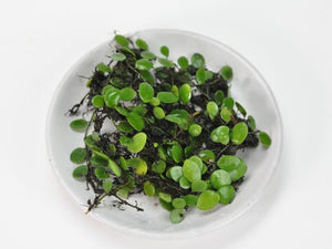 丸く肉厚な葉が樹木や岩に這うように広がるマメヅタは、シダ植物の一種で、苔玉やテラリウムのアクセントとして非常に人気があります。