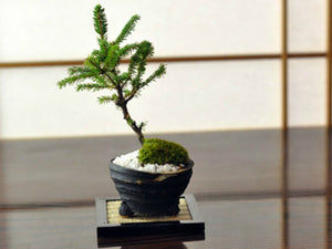枝葉が密集した素材が多いですが、枝は二股になるよう左右に針金で伏せ曲を見せ、不要枝を整理し、どの枝にも日光と風が受けれる事を目標にしましょう。