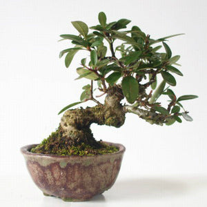 ピラカンサは別名トキワサンザシに属しています。トキワサンザシ、タチバナモドキの事を盆栽では指しています。半日陰でも育ちますが、日当たりが良いと実つきもよく、花がそのまま鈴なりのように実になります。花は1cmにも満たない可愛らしい白花をたくさんつけます。