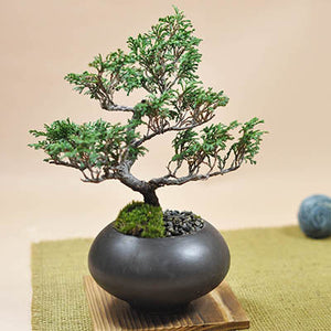 曲がりくねった風情のある幹模様が特徴的でこれぞ盆栽という面持ちです。檜によく似ていますが、比べると葉が小さく枝が細かく、柔らかい雰囲気の樹種です。