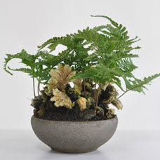 シダ植物らしい切れ込みの多い葉が涼しげで、フサフサな根も見所のひとつです。とても丈夫で、強く乾燥させなければ初心者でも楽に育てられます。寒さに弱く、霜に当たると枯れてしまいますので注意が必要です。夏の代表的な植物として人気のトキワシノブです。