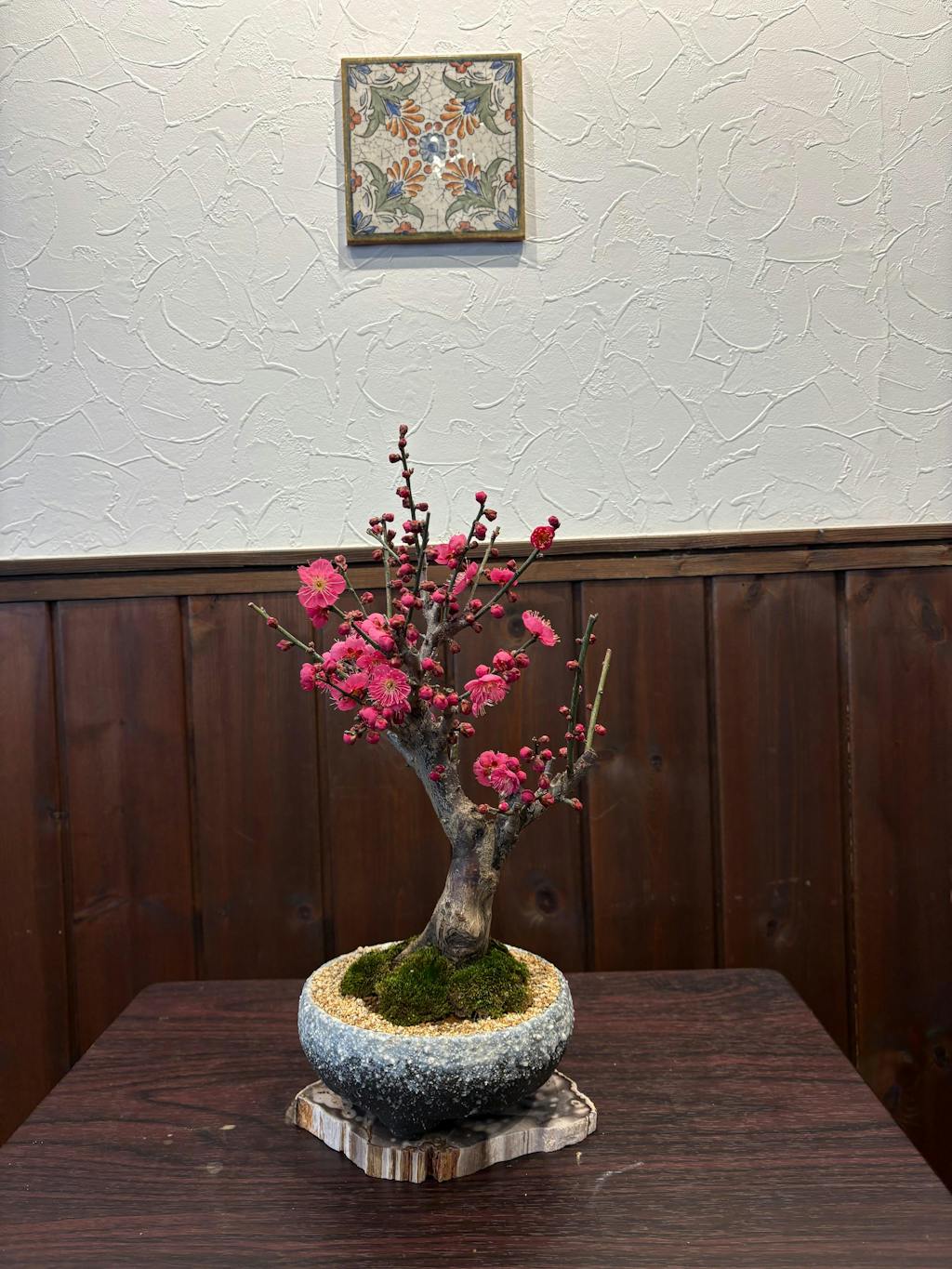 旦那のクリスマスプレゼントに購入しました。年末の忙しいタイミングでしたが、スケジュール通りに配送いただきありがとうございました。とても綺麗な紅梅で、お正月に満開に咲きました。