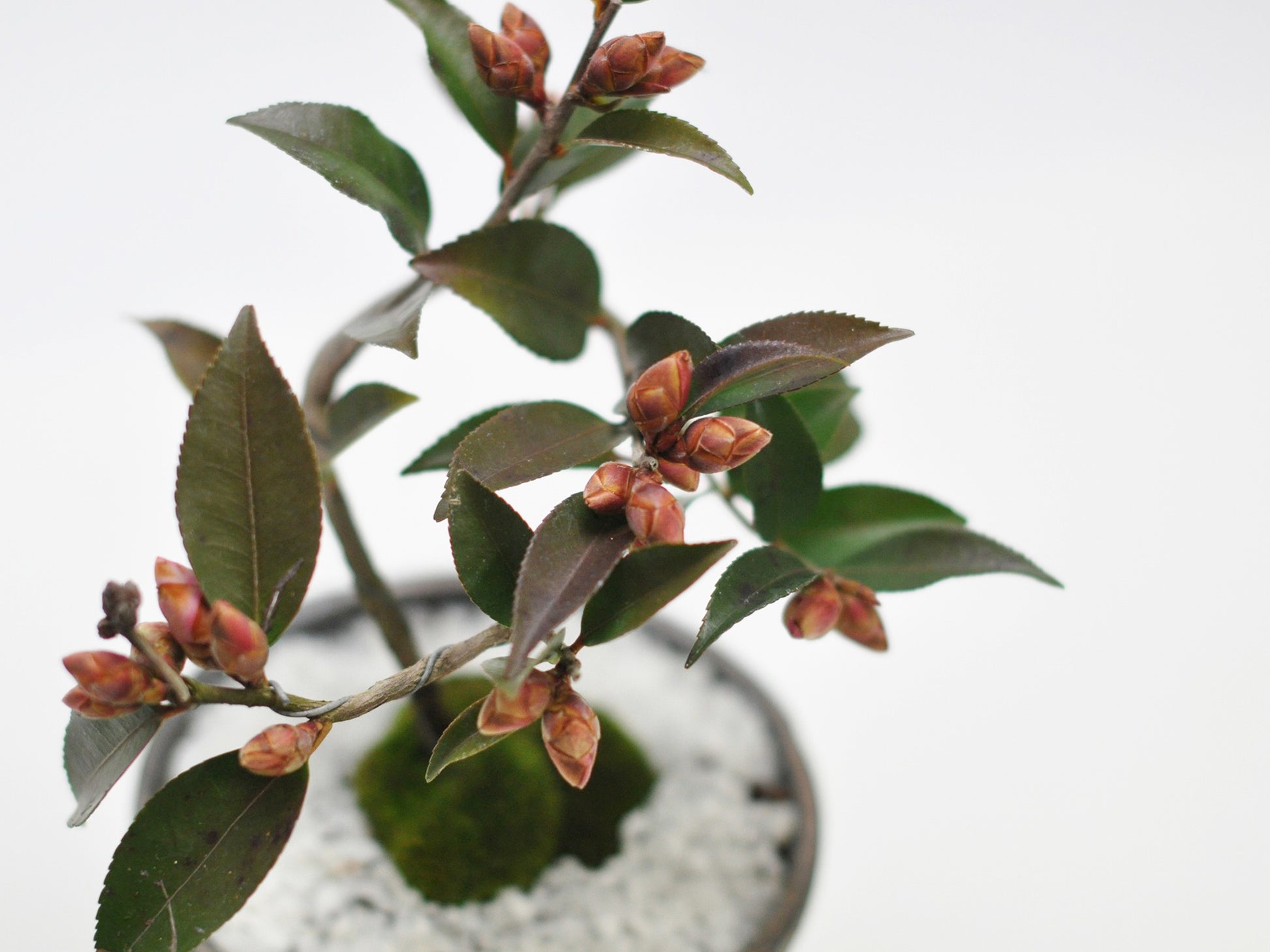いつも丁寧な梱包に感謝しています。庭木の手入れを諦めてカーポートにしてしまった所に少しでも季節を感じられるようにというのがきっかけで始めた盆栽。元々庭にあった木を少しずつ揃えていて今回は念願の椿を送って頂きました。形も針金で綺麗に整えられていて蕾も沢山付いているのを送って頂き、開花するのがとても楽しみです!ありがとうございました!