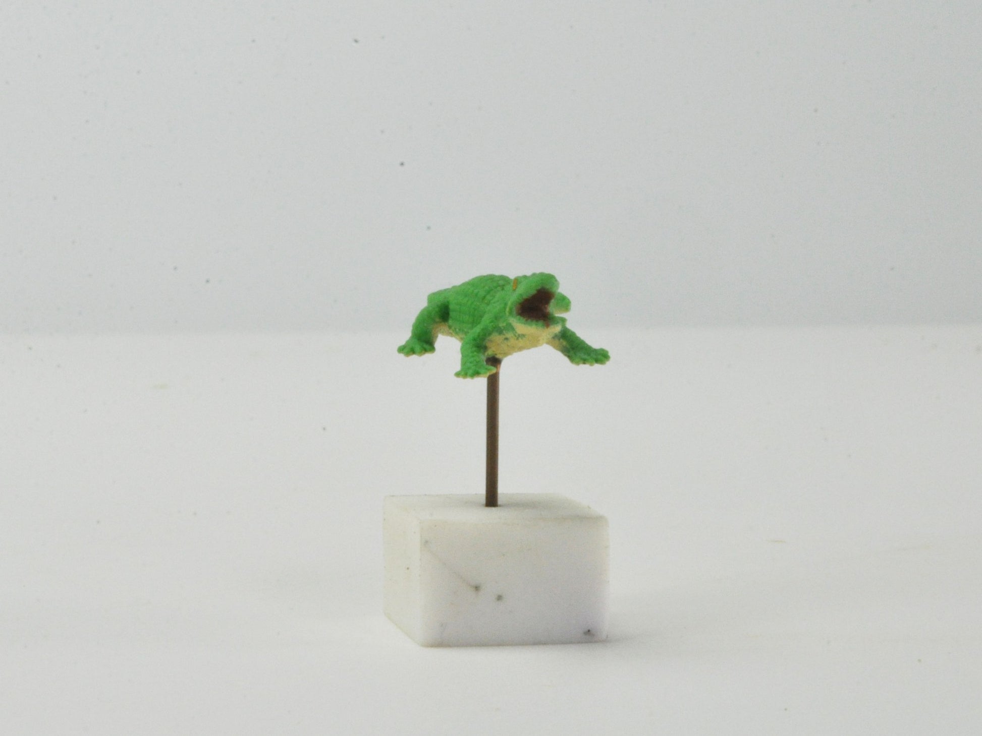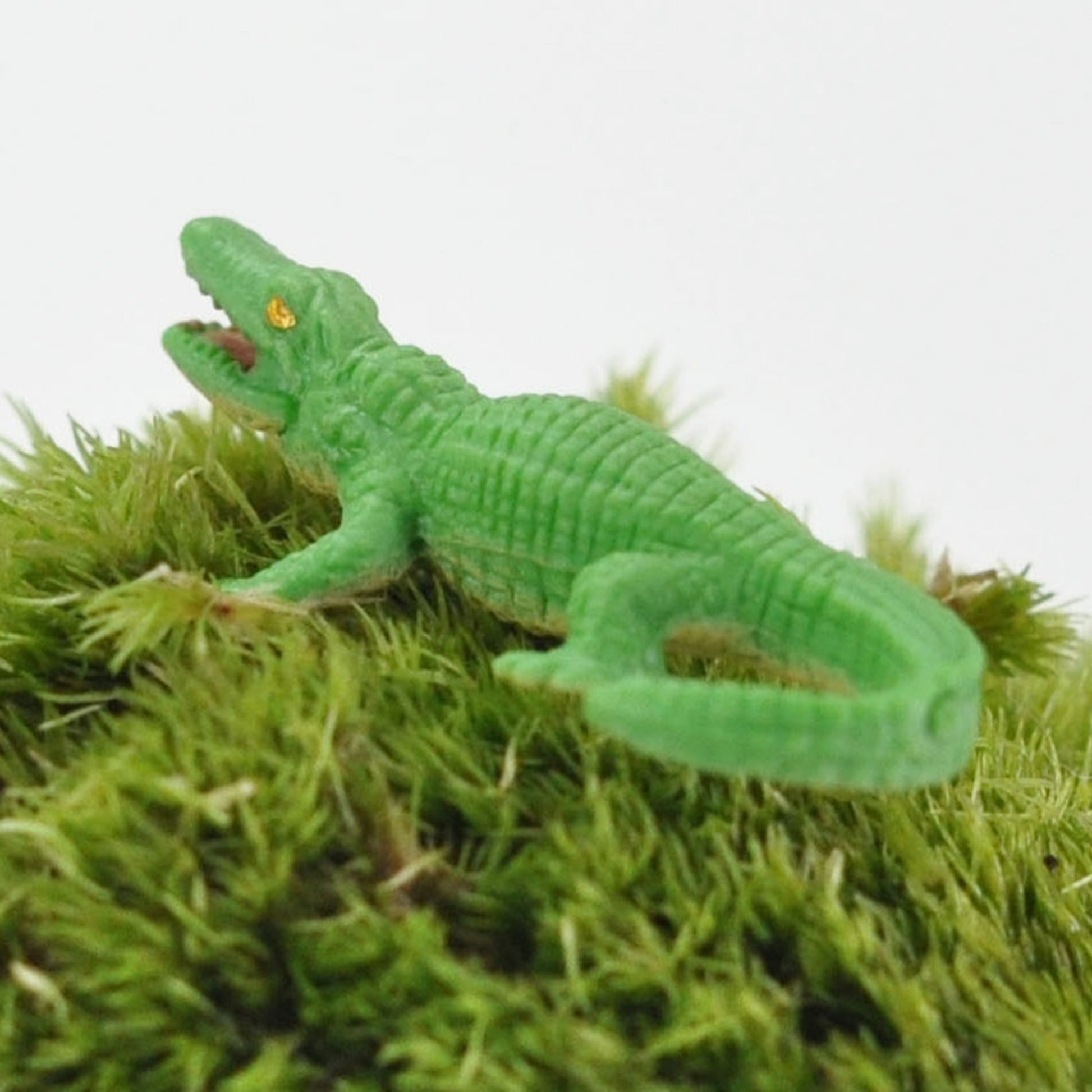 指先でつまめるサイズなので、細部までしっかりこだわって作られたフィギュアです。鋭いキバやぼこぼことした表皮、重厚感のある長いしっぽがとてもリアル。苔やシダ植物とも相性抜群ですが、水辺に飾れるアクアリウムにもお勧めです。草木に隠して、体の一部だけ見せてハラハラしたシーンを演出するのもおすすめです。