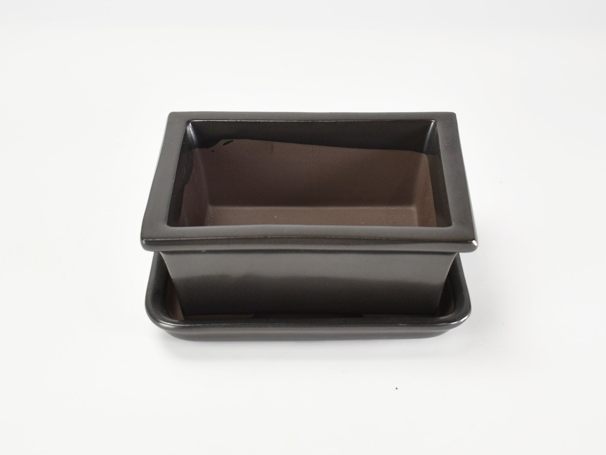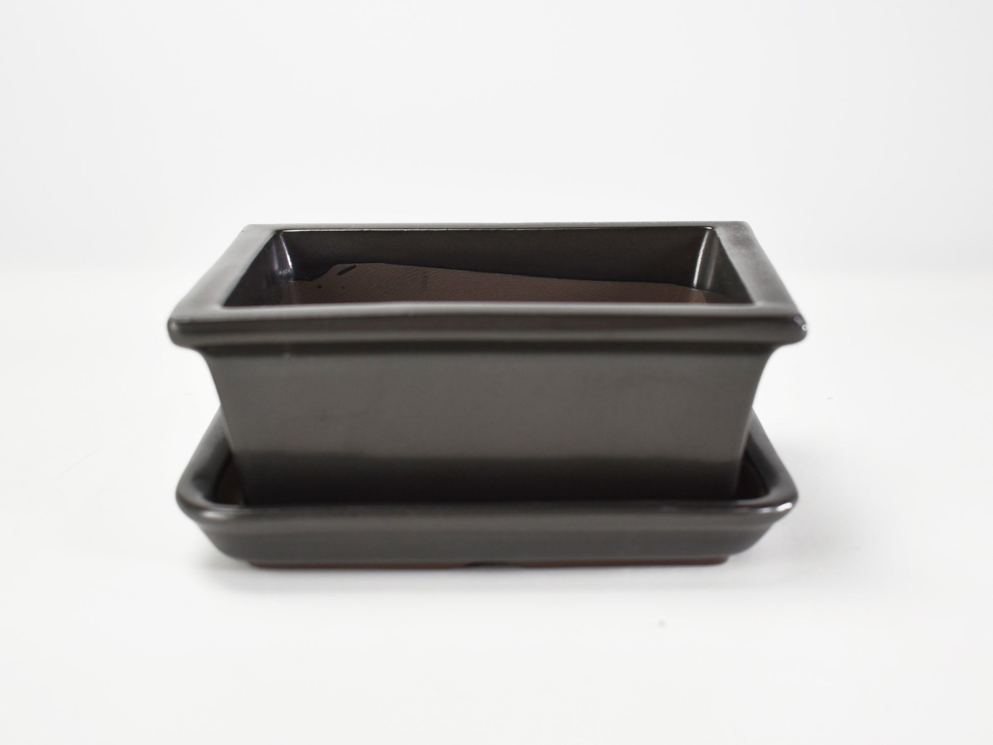 シックな黒マットが魅力の4.5号長方形鉢。スタンダードな角型で、盆栽はもちろん観葉植物との相性も抜群。落ち着いた和モダンな雰囲気が空間を引き締めます。丈夫で手入れがしやすい万古焼製で、長く安心して使えるのもポイント。同色の受け皿付きで、室内でも飾りやすい。シンプルながら個性のある鉢をお探しの方におすすめです。