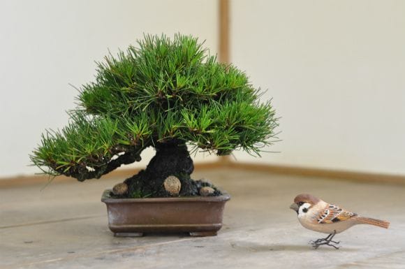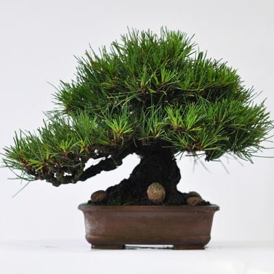 松類の中でも丈夫で育てやすい方です。葉は短く太く触れると痛いくらいです。成木になるにつれ木肌がごつごつと黒くなることから名がつきました。雄雄しい姿から「男松(オマツ・おとこまつ)」と呼ばれ人気の盆栽です。かわいい鉢に仕立てると雰囲気が和らぎますので女性にも親しみやすくなります。