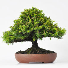 木材や花粉症で身近な存在のスギです。盆栽では花粉がでることはないのでご安心ください。独特の葉の雰囲気を楽しめます。杉盆栽の多くは自然のスギのように幹をまっすぐ育て大木感を表現しています。年数が増すにつれて幹肌が味わい深く荒れていくのが特徴です。