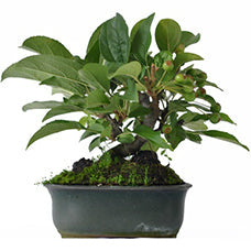 ピンクの蕾から白の花が咲き、その後小さな実がつきます。夏にはきれいな緑色の実、秋に向かって黄色から赤に色づいてきますので一年を通して長く楽しめます。実つきをよくするためにはリンゴやズミなどをそばに置いたり、人工授粉をするといいです。